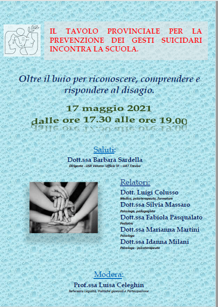 Il 17 maggio 2021 il Tavolo, in particolare il gruppo di lavoro sulle tematiche che riguardano i Minori, ha incontrato dirigenti e docenti di molti istituti della provincia di Treviso per aprire un dialogo sull’Importanza della prevenzione ai gesti suicidari.